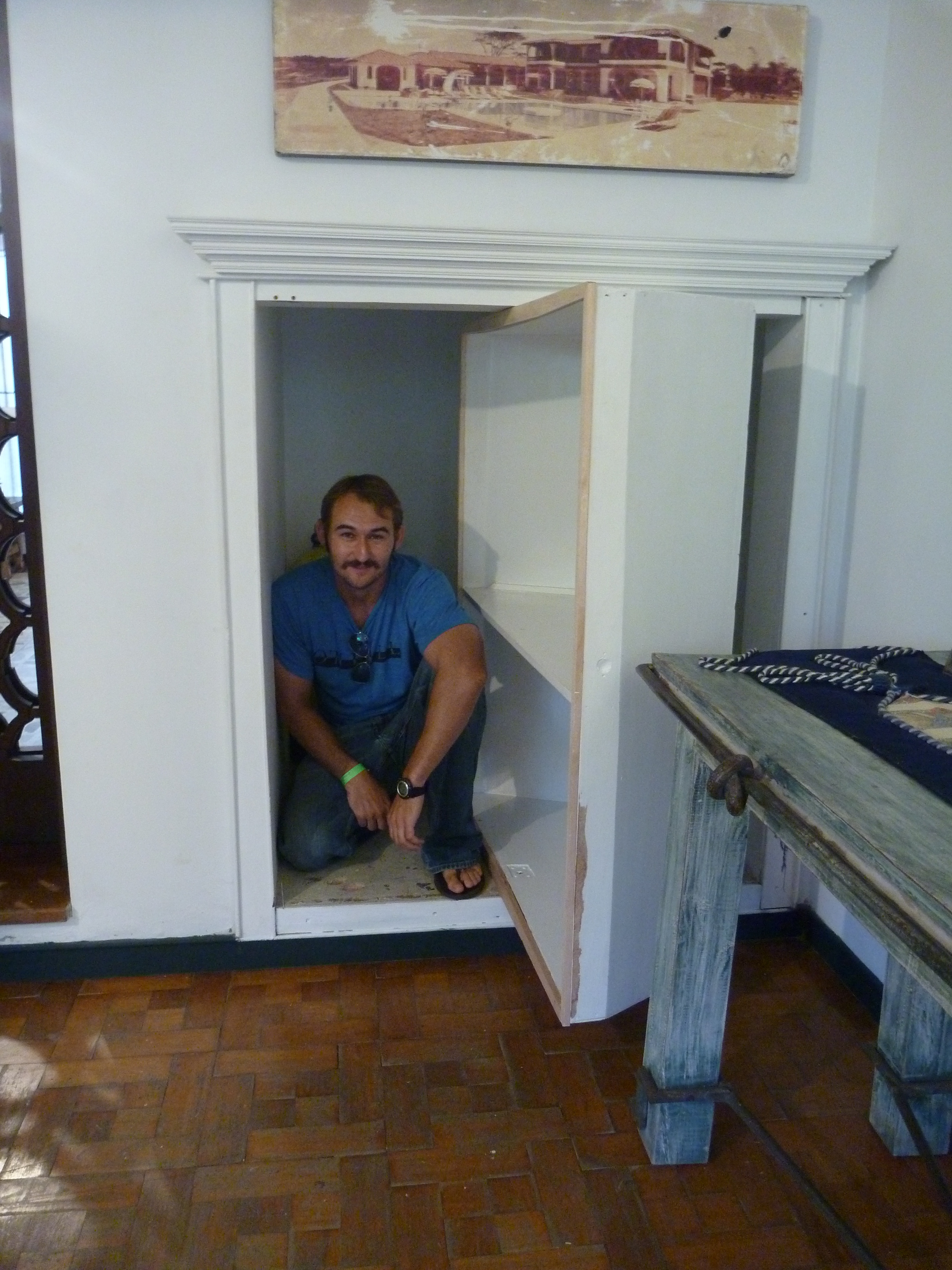 Several times we were told that Roberto doesn’t have any money and that most of the proceeds of the tour go to charity. But at one point we were taken into the formal dining room where one of the walls was completely covered with a mural of a giant brown horse. The tour guide explained that it was a painting of the family’s prized horse who was kidnapped and castrated. It bled to death so Roberto had the horse cloned. The new horse is healthy and is a year and a half old now. Roberto has no money, but he is able to clone his dead pets.